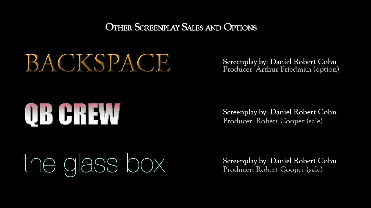 Co-Executive Producer, Co-Writer, Director, Editior: Daniel Robert Cohn